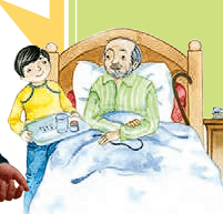 من هر شب، موقع خواب، به او کمک می‌کنم که داروهایش را بخورد.