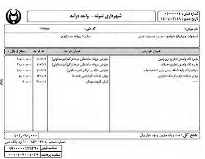۲ـ به تصویر قبض عوارض نوسازی توجه کنید. از پدر و مادرتان درباره آن پرسوجو کنید و اگر میتوانید یک نمونه آن را به کلاس بیاورید و به همکلاسیهایتان نشان دهید.