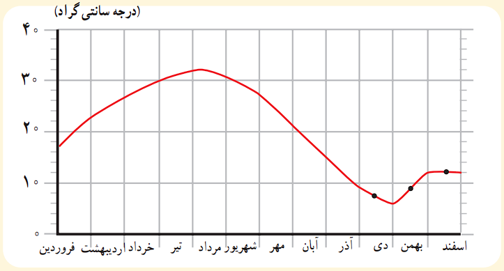این نمودار میانگین* دمای شهر یزد را در ماههای مختلف نشان میدهد.