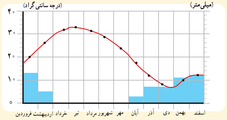 ● میزان بارش یک ناحیه را با نمودار ستونی و به رنگ آبی نشان میدهند.