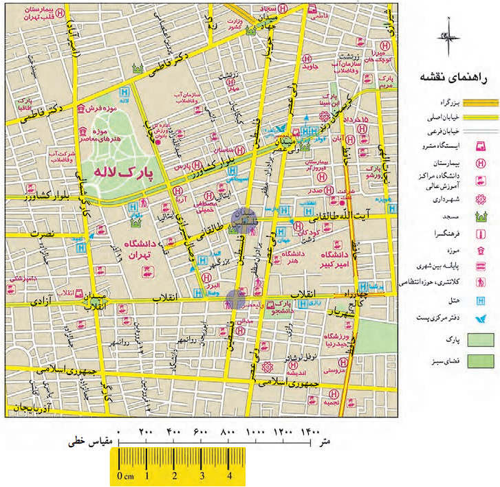 ۵ـ اگر بخواهید از میدان انقلاب به تقاطع کارگر شمالی و بلوار کشاورز بروید، چه مسافتی (چند متر) را باید طی کنید؟