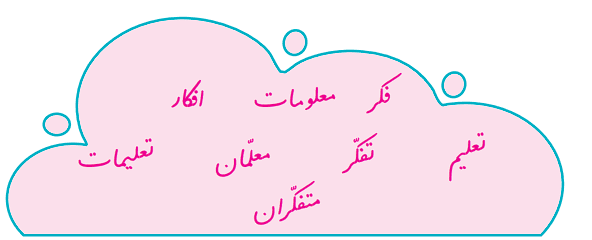 درس دومپنجرههای شناختاملا و واژه آموزی تمرین ۱ از بین واژههای زیر، آنهایی را که با هم ارتباط دارند، در یک گروه قرار دهید.الف ← فکر، تفکر، متفکران، افکارب ← تعلیم، معلومات، معلمان، تعلیمات