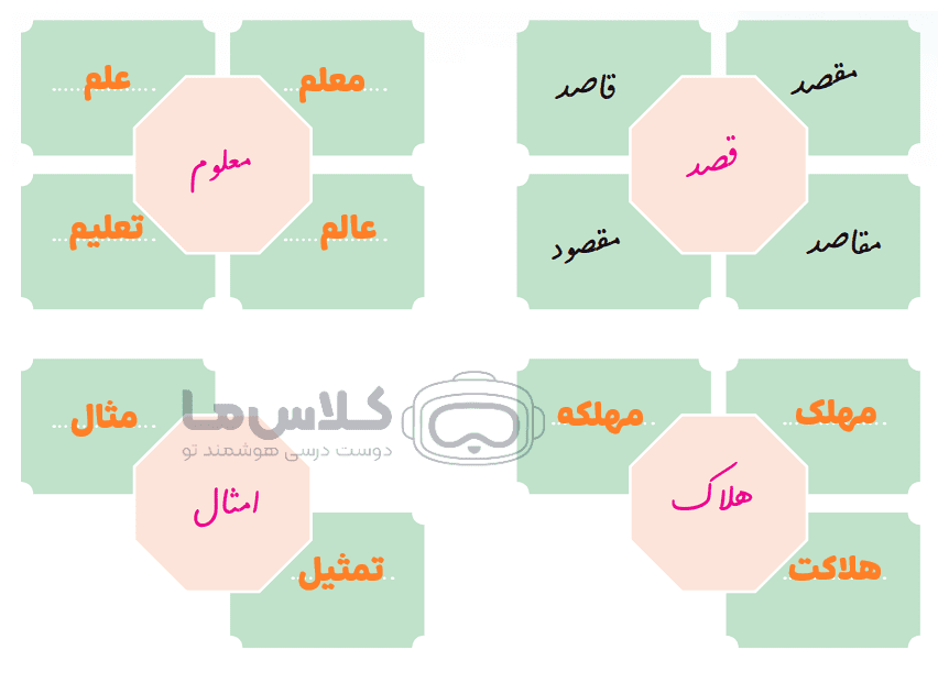 ۱ مانند نمونه، هم‌خانواده‌ی هر یک از واژه‌ها را بنویسید.