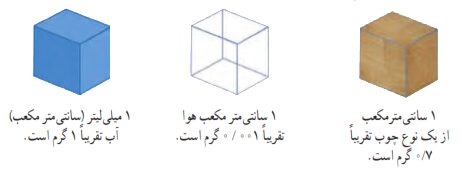 شکلهای زیر جرم یک سانتیمتر مکعب از چند مادۀ متفاوت را نشان میدهند: