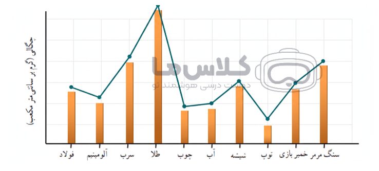 ب) چگالی همۀ مواد داده شده را روی نمودار زیر رسم کنید.