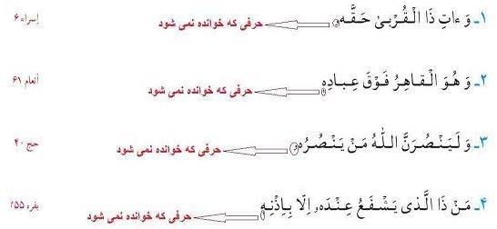در تمرین بالا، حرکت قبل از حروف ناخوانا را به ساکن یا تشدید بعد از آنها، با فلش وصل کنید.
