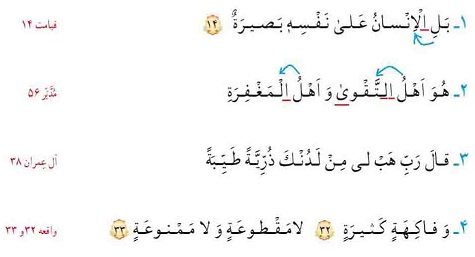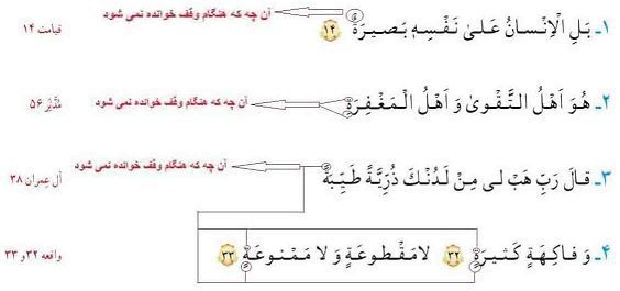 این جملههای قرآنی را بخوانید و دور آنچه که هنگام وقف خوانده نمیشود، خط بکشید.