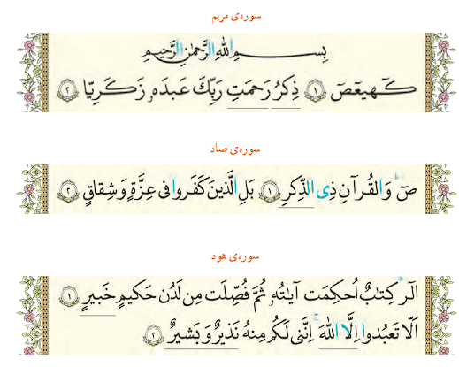 این آیات قرآنی را با دقت در حروف مقطعه بخوانید و با توجه به علامتهای وقف (م، ط، ج، ز) و آخر آیات، وقف کنید.